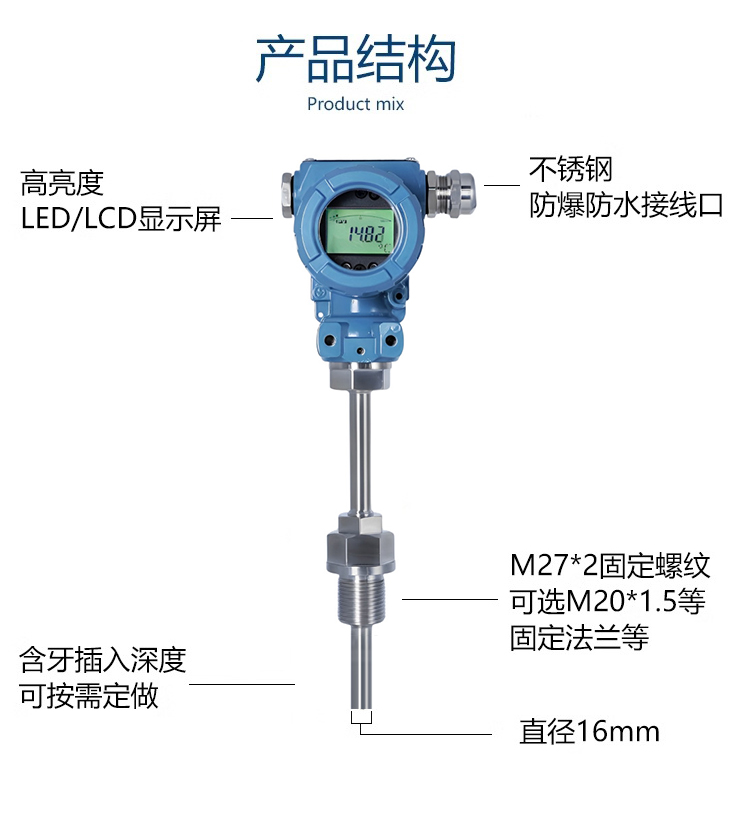 一體化數顯溫度變送器是一種將工業熱電偶、熱電阻信號轉換為標準輸出信號的儀表,采用二線制傳輸方式,可直接安裝在熱電偶、熱電阻的接線盒內,具有耐震、耐濕、抗干擾能力強等特點,**應用于冶金、石油、化工等領域?。