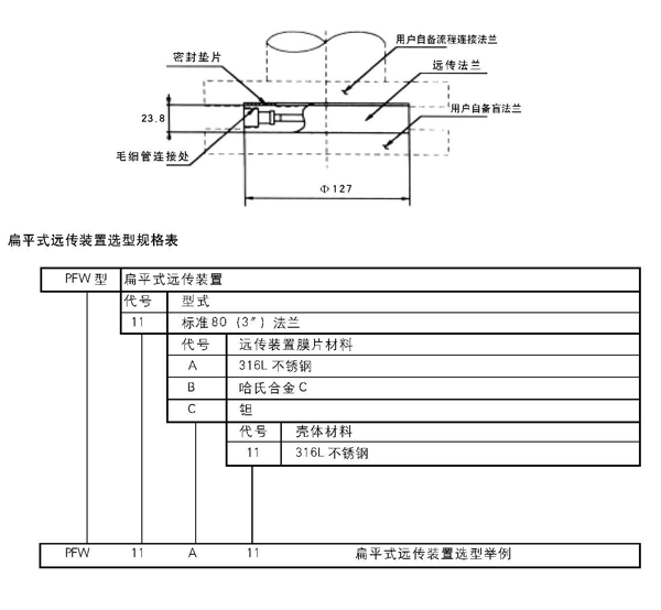 (零基準校驗范圍,參考條件下,硅油充液,316L不銹鋼隔離膜片)雙法蘭差壓變送器是用于防止管道中的介質直接進入變送器里的壓力傳感器組件中,它與變送器之間是靠注滿流體的毛細管連接起來的。RZ3351DP-R雙法蘭差壓變送器用于測量液體、氣體或蒸汽的液位、密度和壓力,然后將其轉換為4~20mA DC信號輸出。RZ3351DP-R雙法蘭差壓變送器也可與HART手操器相互通訊,通過它進行設定、監控。